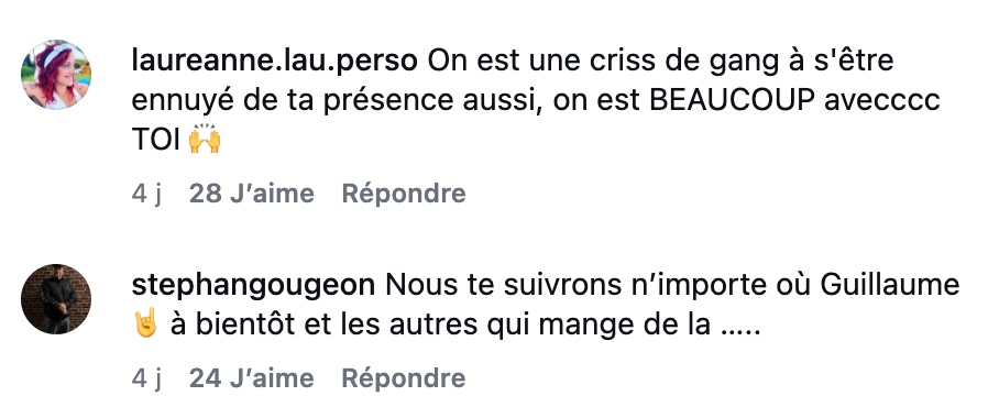 En agissant ainsi, Guillaume renverse complètement la dynamique : au lieu de se laisser atteindre par la critique, il la transforme en opportunité d’établir un contact positif. Une manière élégante de montrer que l’humour et l’ouverture peuvent désamorcer bien des tensions. (via Conneries QC)
