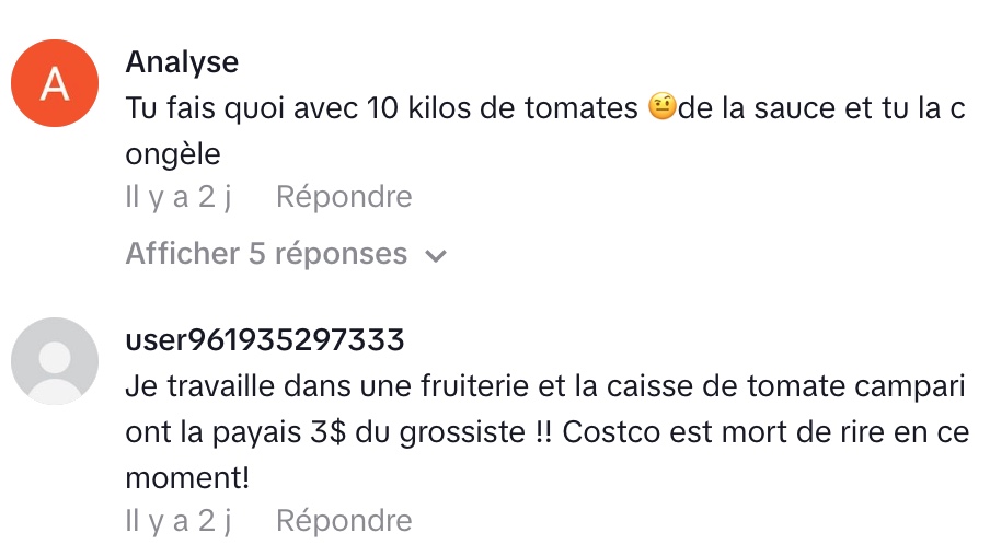 Le moment le plus marquant reste la découverte d’un énorme format de tomates : près de sept kilos pour environ 10,99 $. Pour eux, c’est tout simplement « malade » et difficile à croire dans le contexte actuel où les consommateurs dénoncent sans cesse la hausse du coût de la vie.