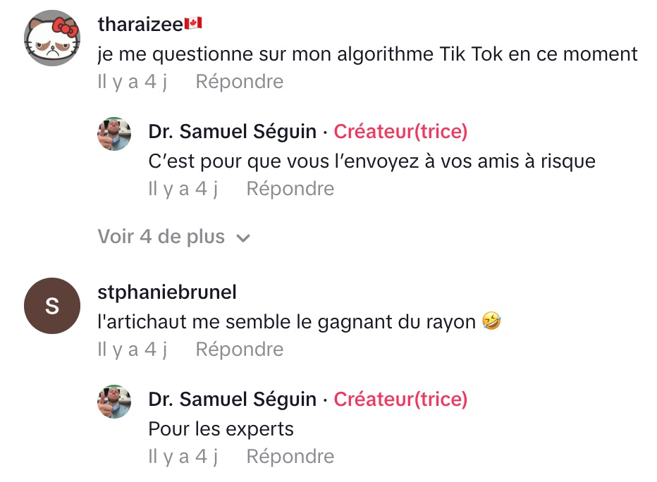 Dans sa vidéo TikTok tournée à l’épicerie, le Dr Samuel Séguin utilise un décor banal le rayon des fruits et légumes pour livrer un message à la fois surprenant, éducatif et teinté d’humour noir. En quelques phrases, le chirurgien général aborde un sujet rarement discuté publiquement : l’introduction de corps étrangers dans le rectum et les conséquences médicales qui peuvent en découler. Son approche est volontairement directe, mais jamais moralisatrice. Il rappelle que, peu importe les pratiques ou les envies de chacun, il existe presque toujours des options sécuritaires, notamment des objets munis d’un stopper, conçus pour éviter les accidents.