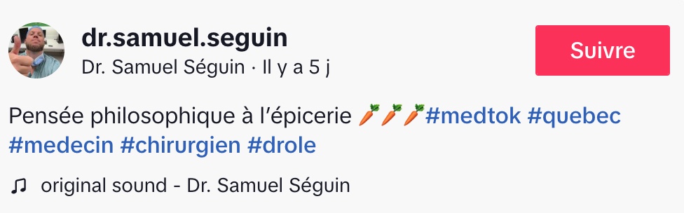 @dr.samuel.seguin Pensée philosophique à l’épicerie 🥕🥕🥕#medtok #quebec #medecin #chirurgien #drole ♬ original sound – Dr. Samuel Séguin