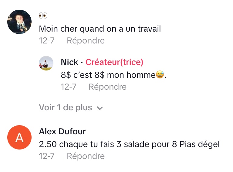 Il s’attarde notamment à une simple salade romaine, symbole devenu presque absurde du coût de la vie. Pas d’épicerie fine, pas de produit spécial, mais des montants qui donnent envie de sacrer. Malgré tout, Nick garde le sourire et l’autodérision, ce qui rend son message encore plus percutant. Il ne chiale pas gratuitement : il constate, comme tout le monde, que faire l’épicerie devient un exercice frustrant.