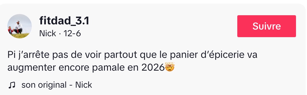 @fitdad_3.1Pi j’arrête pas de voir partout que le panier d’épicerie va augmenter encore pamale en 2026🤯♬ son original – Nick