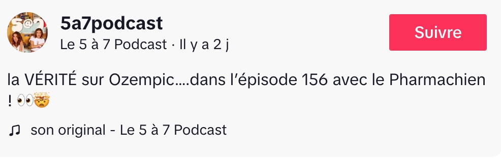 @5a7podcastla VÉRITÉ sur Ozempic….dans l’épisode 156 avec le Pharmachien ! 👀🤯♬ son original – Le 5 à 7 Podcast
