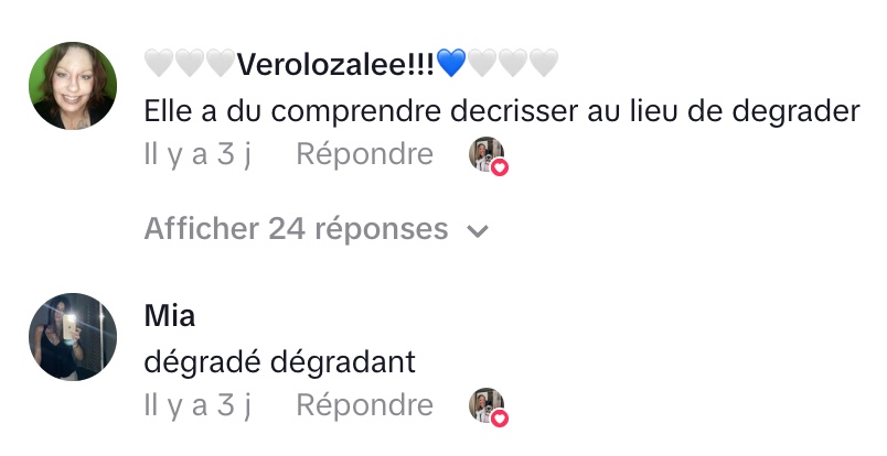 Inquiète et déçue, Amira retourne au salon le lendemain pour demander une correction. Elle décrit la scène avec humour et exaspération : le personnel la regarde de manière incompréhensible et insiste que la coupe est correcte et conforme à sa demande. Amira essaie d’expliquer que ce qu’elle voulait, c’était un dégradé simple et uniforme, sans ces couches visibles qui gâchent l’esthétique.