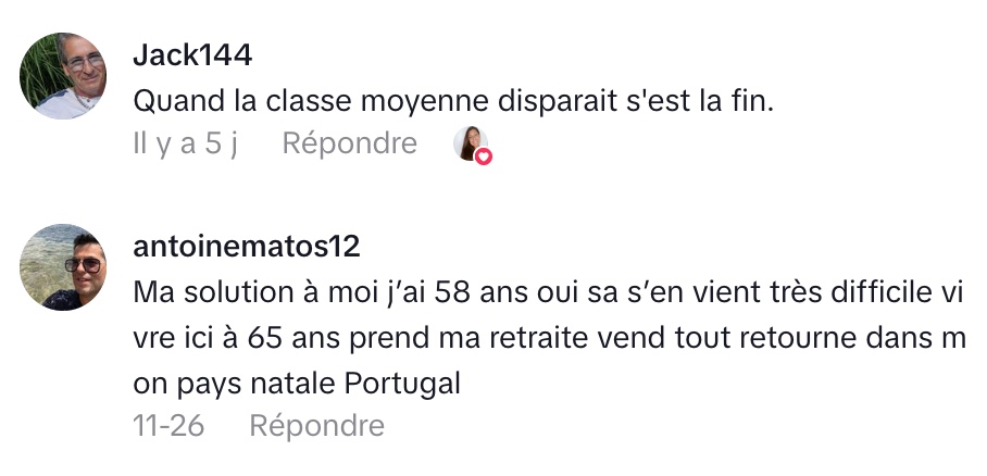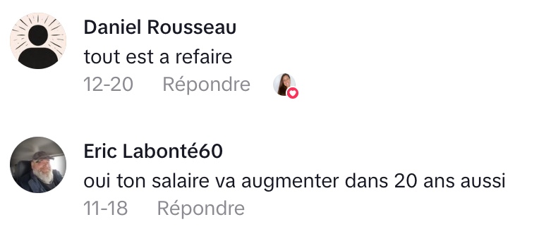 Enfin, Claudie affirme que la classe moyenne est en voie de disparition, une idée partagée par plusieurs experts. Elle observe une société de plus en plus polarisée, où l’on est soit à l’aise financièrement, soit en grande difficulté. Plutôt que de sombrer dans le découragement, elle invite toutefois les gens à s’adapter, en développant des plans financiers ou des sources de revenus alternatives pour faire face à cette nouvelle réalité. (via Conneries QC)