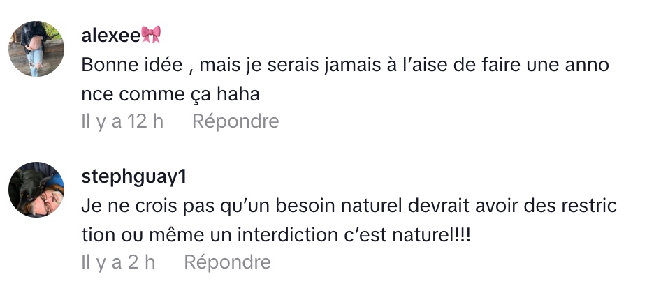 La fille derrière le compte TikTok Maison Couleurs a lancé un débat aussi inattendu que rafraîchissant. Dans une vidéo devenue virale, elle raconte qu’après un souper chez elle, elle a fait une annonce pour le moins originale : sa toilette était officiellement disponible pour ceux et celles qui auraient besoin de faire leur « numéro deux ». Elle a même précisé que tout était prévu : allumettes, lingettes, chandelles, musique, le tout dans un esprit de non-jugement total. Une façon décomplexée de rappeler que c’est un besoin humain normal, même s’il reste souvent tabou.
