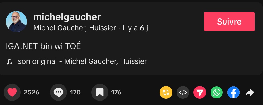 @michelgaucherIGA.NET bin wi TOÉ♬ son original – Michel Gaucher, Huissier