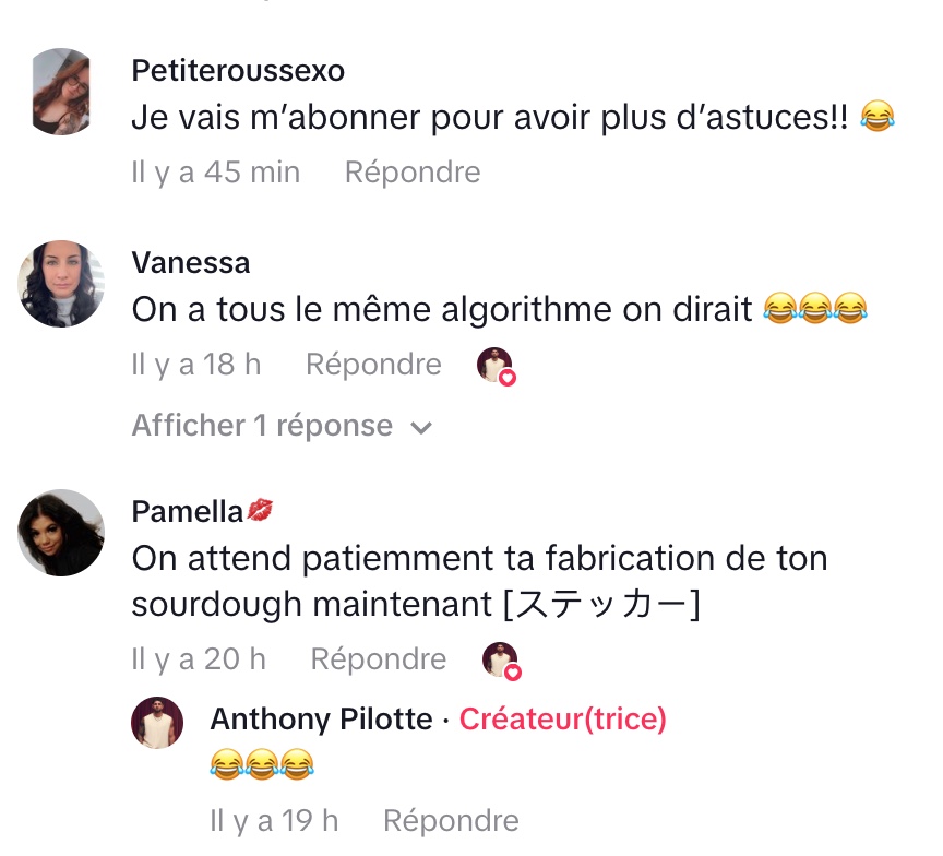 Avec son ton cru et assumé, Anthony met le doigt sur une tendance bien ancrée sur les réseaux sociaux, où la performance et la patience deviennent presque un spectacle. Il oppose cette quête artisanale à une solution beaucoup plus simple : aller à la boulangerie et acheter un pain tout aussi bon, sans le stress ni l’attente interminable. Son message, à la fois moqueur et terre-à-terre, résonne chez ceux qui trouvent que certaines modes vont parfois un peu trop loin.