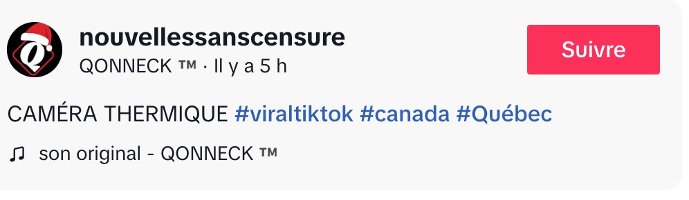 @nouvellessanscensure CAMÉRA THERMIQUE #viraltiktok #canada #Québec ♬ son original – QONNECK ™️