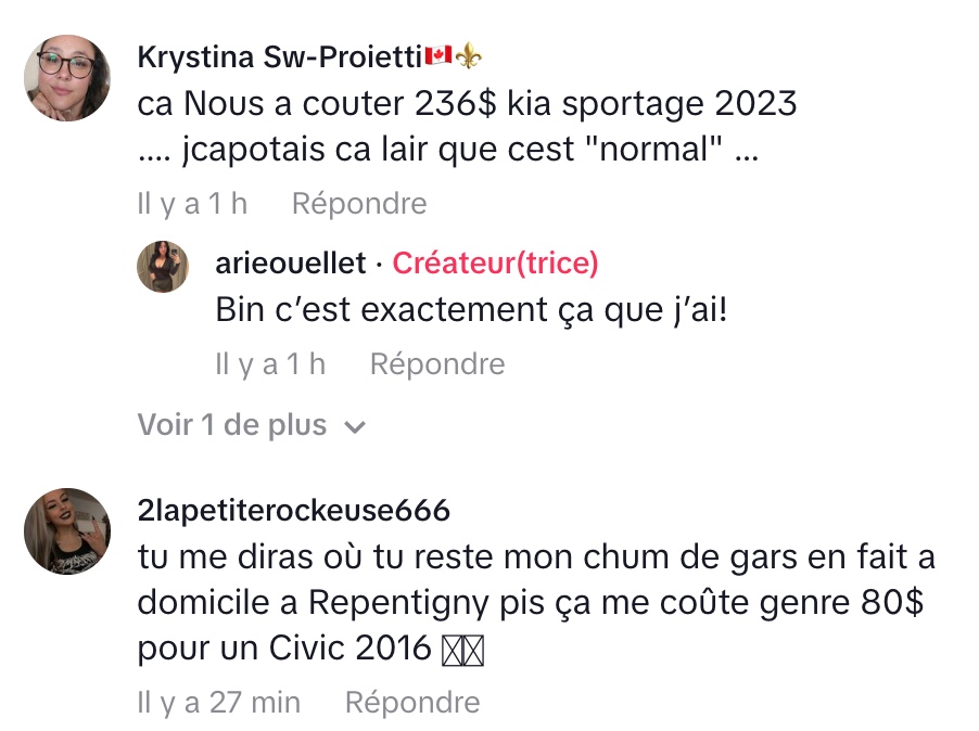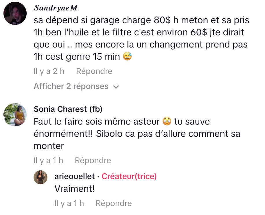 Ari exprime sa frustration sur TikTok après avoir payé 190 $ pour un simple changement d’huile sur sa Kia. Elle est visiblement choquée par le prix et se demande si c’est vraiment le tarif normal en 2026, surtout pour une voiture qui n’est pas de luxe.
