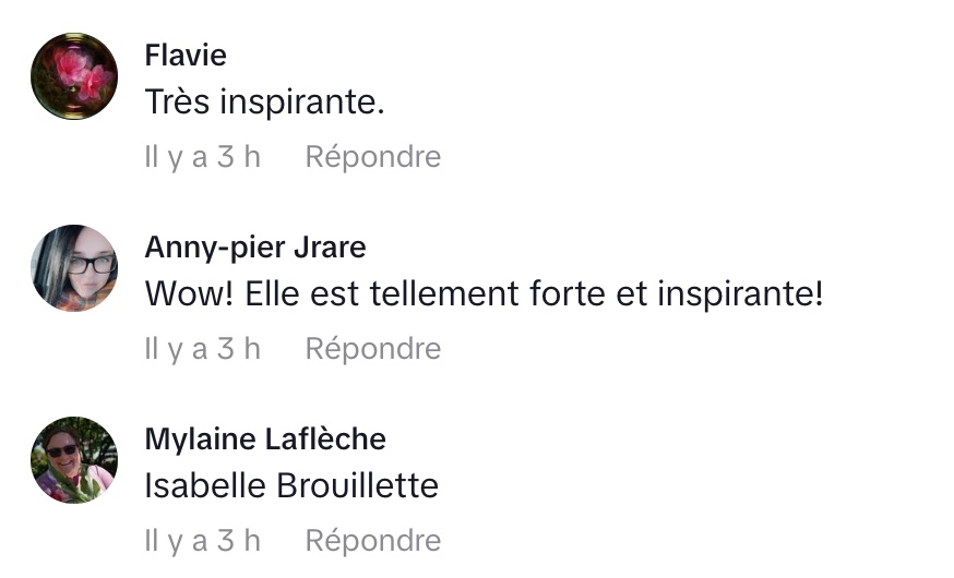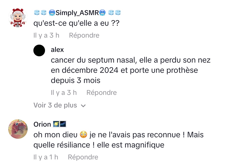 Elle exprime l’étonnement face à une peur largement répandue : celle de devenir un « monstre » aux yeux des autres. Pourtant, son expérience démontre le contraire. Selon elle, les gens ont fait preuve de respect et de douceur, et personne ne l’a dévisagée.