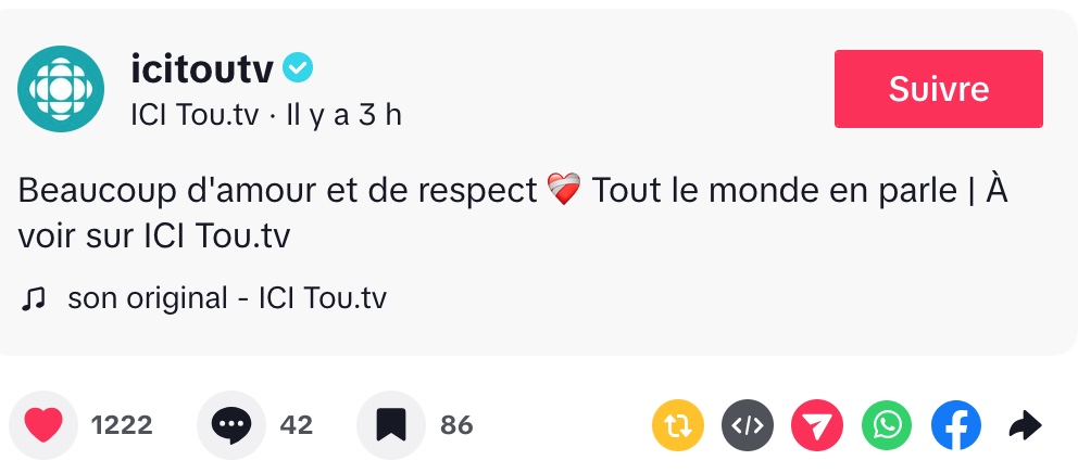 @icitoutvBeaucoup d’amour et de respect ❤️🩹 Tout le monde en parle | À voir sur ICI Tou.tv♬ son original – ICI Tou.tv