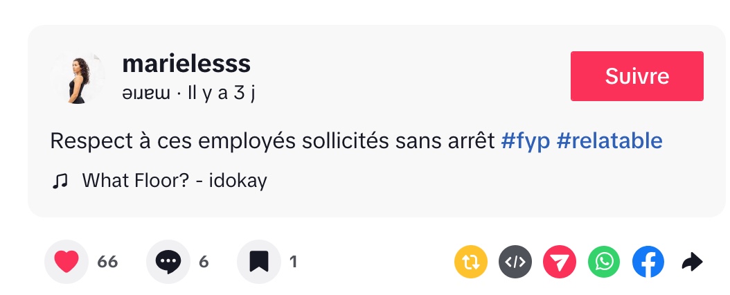Dans son TikTok, Marie met le doigt sur une réalité que bien des clients observent sans toujours la nommer : le travail aux caisses libre-service est loin d’être une tâche tranquille. Avec son ton direct et un brin sarcastique, elle affirme que si elle occupait ce poste, elle exigerait clairement une prime horaire.