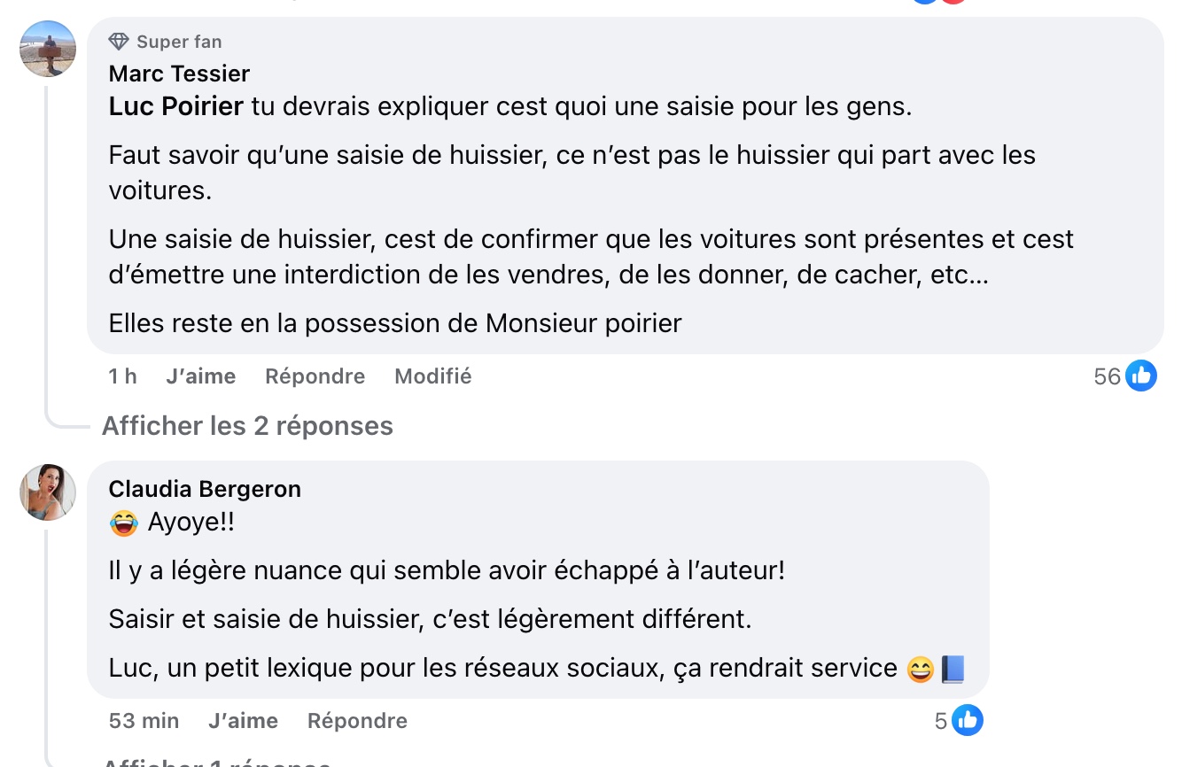 D’après ses propos, ce dernier tenterait désormais de forcer la vente, ce qui aurait mené à la situation actuelle et, ultimement, au titre accrocheur de l’article. Luc Poirier insiste sur le fait qu’il ne s’agit pas d’une saisie au sens où le public pourrait l’interpréter, mais plutôt d’un litige entourant une transaction avortée.