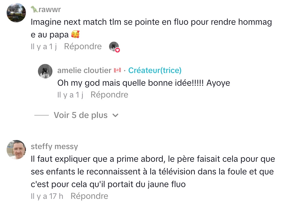 Dans son TikTok, Amélie raconte une histoire à la fois touchante et profondément humaine, née d’une simple curiosité. Comme plusieurs partisans du Canadien, elle avait remarqué ces deux personnes toujours assises au même endroit au Centre Bell, vêtues de chandails jaune fluorescent. Un détail impossible à manquer, au point de susciter toutes sortes d’hypothèses : publicité, coup marketing, clin d’œil étrange. Mais derrière ces chandails voyants se cachait une signification beaucoup plus émouvante.