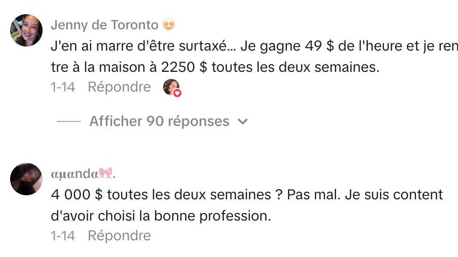 Toutefois, comme elle le souligne avec un brin d’exaspération, vivre au Canada signifie aussi composer avec de nombreuses déductions. À elle seule, la facture fiscale s’élève à 2 240,80 $, un montant qu’elle compare à son paiement hypothécaire mensuel de 1 900 $, qualifiant la situation d’« insensée », bien qu’inévitable.