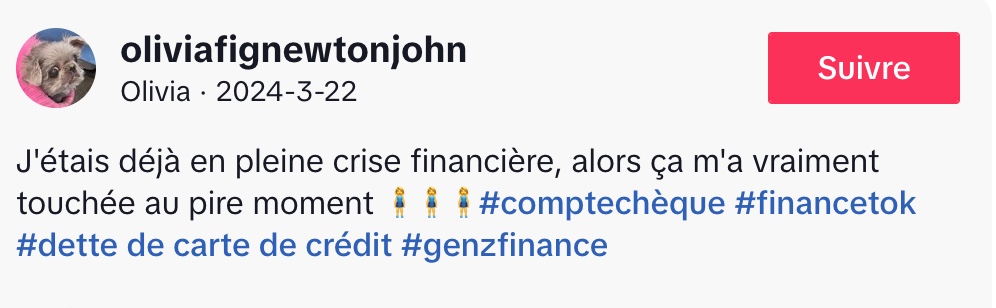Ce débat met surtout en lumière l’écart marqué entre différentes réalités économiques. Pour une partie de la population, disposer de milliers de dollars en tout temps est un standard; pour d’autres, c’est complètement hors de portée. Olivia, visiblement stupéfaite, précise qu’elle ne cherche pas à se moquer, mais admet qu’elle n’a même pas cette somme en économies totales.