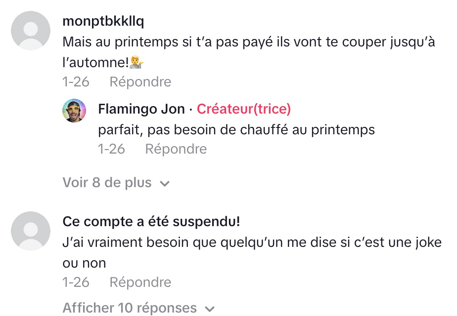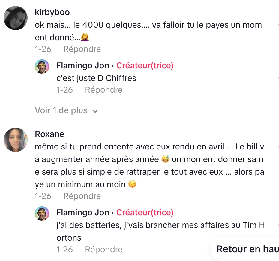 Sur TikTok, Jon fait vivement réagir avec une vidéo où il explique ouvertement refuser de payer sa facture d’Hydro-Québec, qui s’élèverait à près de 4 340 $. Dans son discours, il affirme profiter de la période hivernale, du 1er décembre au 31 mars, durant laquelle Hydro-Québec ne peut pas couper l’électricité afin d’éviter les risques liés au froid. Pour lui, cette règle devient une sorte de « prêt » forcé dont il compte bien tirer avantage.