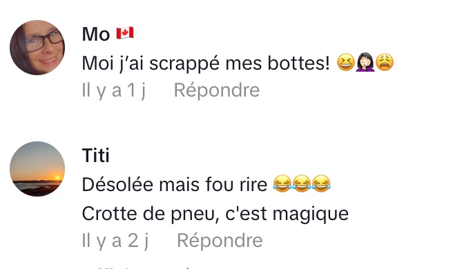 Avec un ton à la fois exaspéré et complice, elle explique que ces « crottes de pneus », comme elle les appelle, font partie des petits plaisirs coupables de l’hiver au Québec. Les retirer soi-même, souvent d’un simple coup de pied, devient presque un rituel.