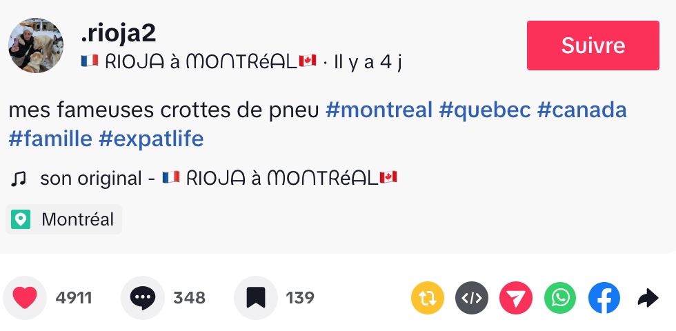 @.rioja2 mes fameuses crottes de pneu #montreal #quebec #canada #famille #expatlife ♬ son original – 🇫🇷 ᖇIOᒍᗩ à ᗰOᑎTᖇéᗩᒪ🇨🇦