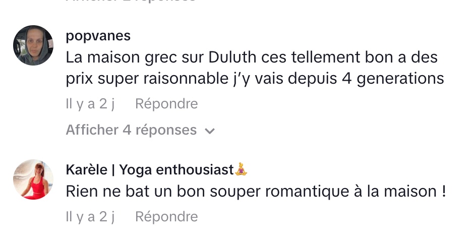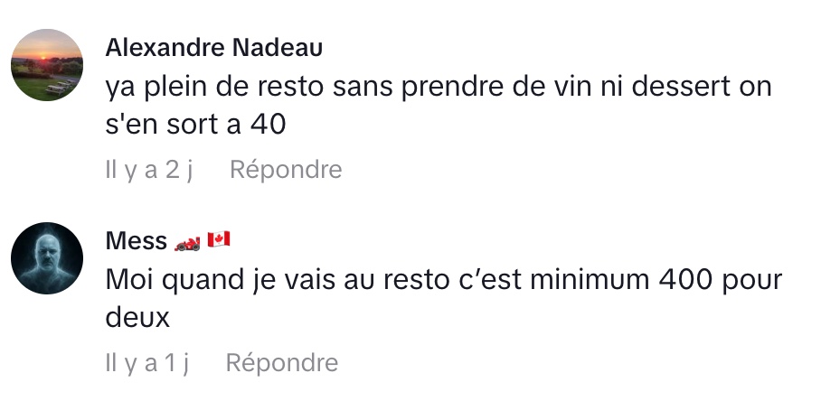 Au-delà du manque de disponibilité, c’est surtout la flambée des prix qui la fait réagir. Elle mentionne des menus affichés à 100-150 dollars par personne, des factures dépassant facilement les 80 ou 100 dollars, et se demande dans quel monde on vit pour qu’un souper puisse coûter aussi cher.
