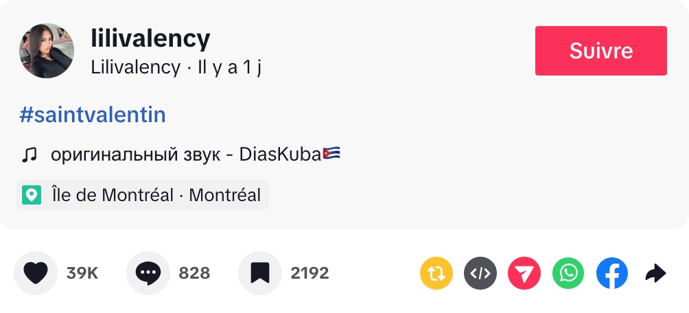 Dans une vidéo TikTok au ton à la fois sarcastique et cru, Lili affirme qu’elle est « quand même contente » d’être célibataire pour la Saint-Valentin. À travers une mise en scène très imagée, elle tourne en dérision certains standards amoureux qu’elle juge médiocres ou intéressés.
