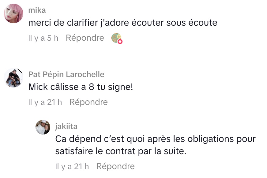 Dans sa vidéo, Mike Ward précise qu’il existe bien un intérêt réel, mais rien qui s’approche des sommes évoquées publiquement. Il lance même une boutade directement à Lemay-Thivierge, l’invitant à revenir avec une proposition crédible s’il le souhaite.