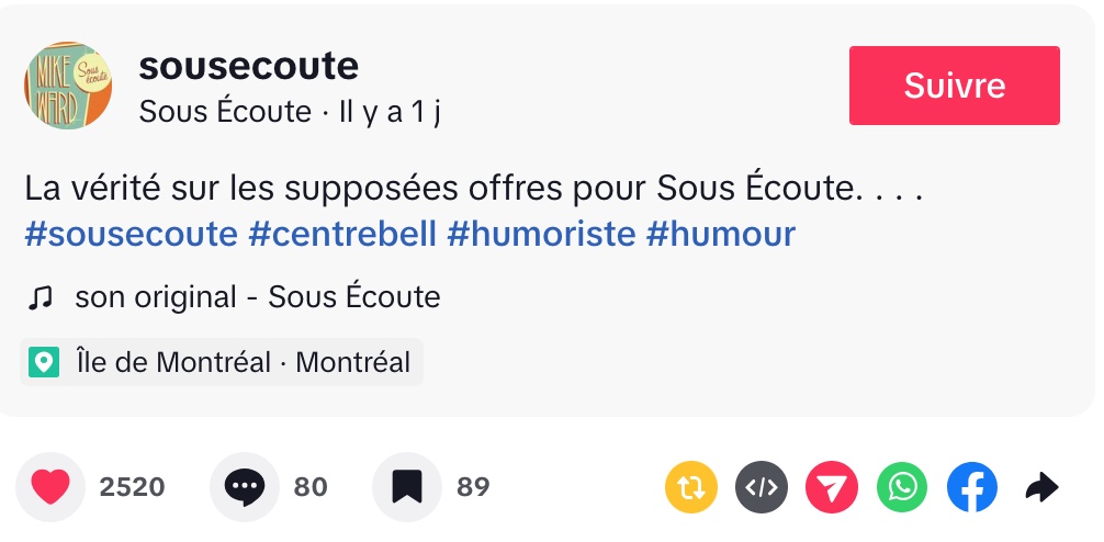 @sousecoute La vérité sur les supposées offres pour Sous Écoute. . . . #sousecoute #centrebell #humoriste #humour ♬ son original – Sous Écoute