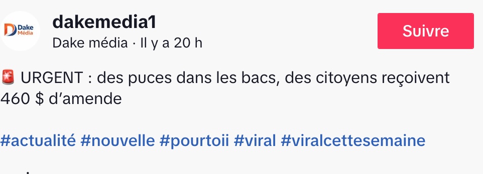 @dakemedia1 🚨 URGENT : des puces dans les bacs, des citoyens reçoivent 460 $ d’amende #actualité #nouvelle #pourtoii #viral #viralcettesemaine ♬ son original – Dake média