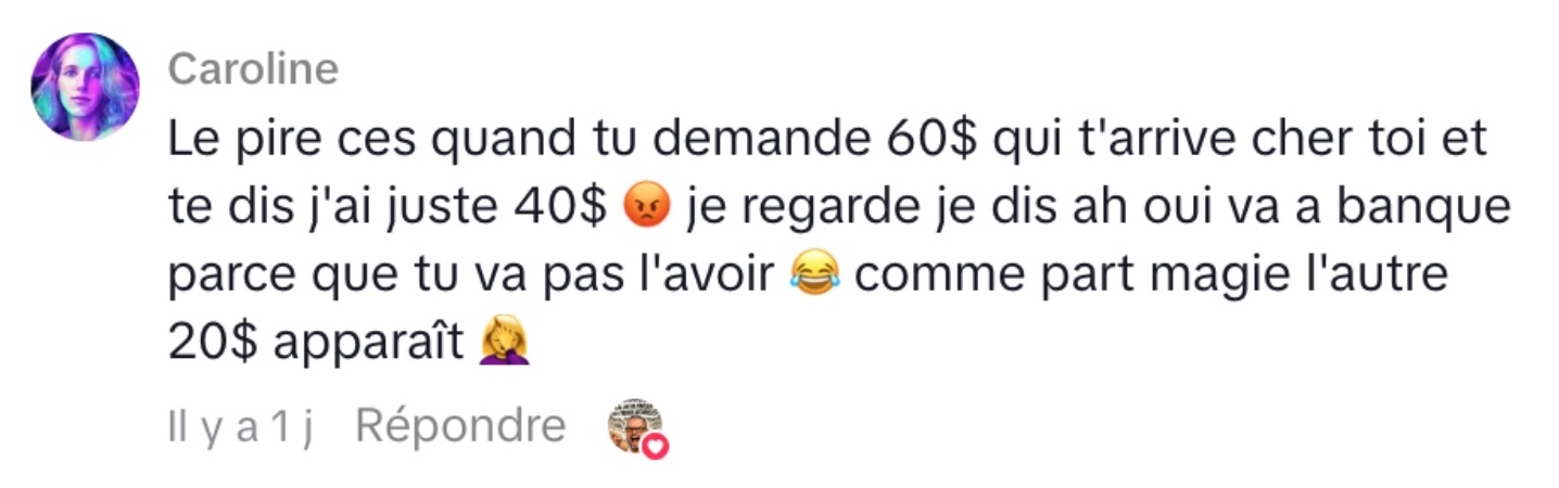 Pour lui, c’est l’incompréhension totale : comment peut-on tenter de négocier un prix déjà réduit de 280 $ ? Cette situation devient le symbole d’un manque de respect et, surtout, d’un manque de logique.