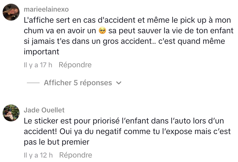 Dans les commentaires, plusieurs internautes offrent toutefois une perspective différente. Ils rappellent que l’autocollant a d’abord été conçu pour signaler aux services d’urgence la présence possible d’un enfant à bord en cas d’accident.