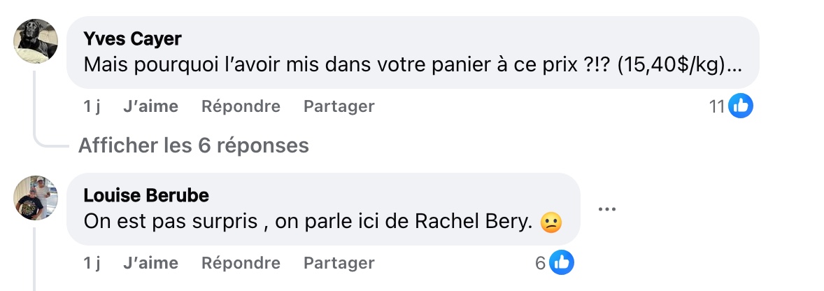 Dans son message, l’auteur de la publication exprime clairement son mécontentement. Il affirme que ce sera désormais terminé pour lui de faire son épicerie santé chez Rachelle Béry et indique qu’il se tournera plutôt vers d’autres commerces comme Tau, La Moisson ou BioSatva. Il conclut son message en disant qu’il doit bien y avoir « une maudite limite aux commerces vicieux », une phrase qui résume bien sa frustration face au prix payé pour deux simples légumes.