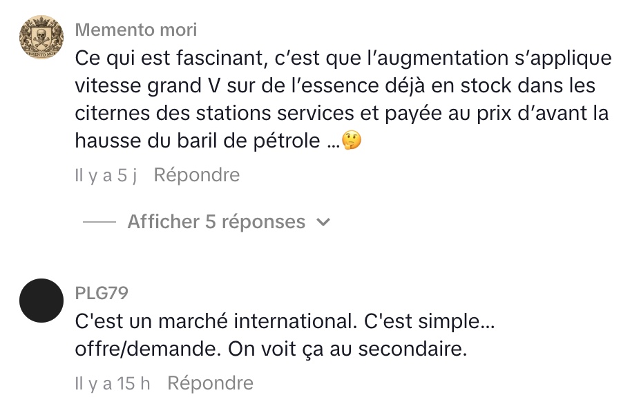Son commentaire met en lumière une réalité importante : pour beaucoup de travailleurs, la voiture est essentielle pour se rendre au travail. Quand le prix de l’essence augmente, cela peut avoir un impact direct sur leur budget quotidien. Ainsi, même si les raisons économiques derrière la hausse des prix sont globales et parfois complexes, les conséquences sont très concrètes pour les citoyens.