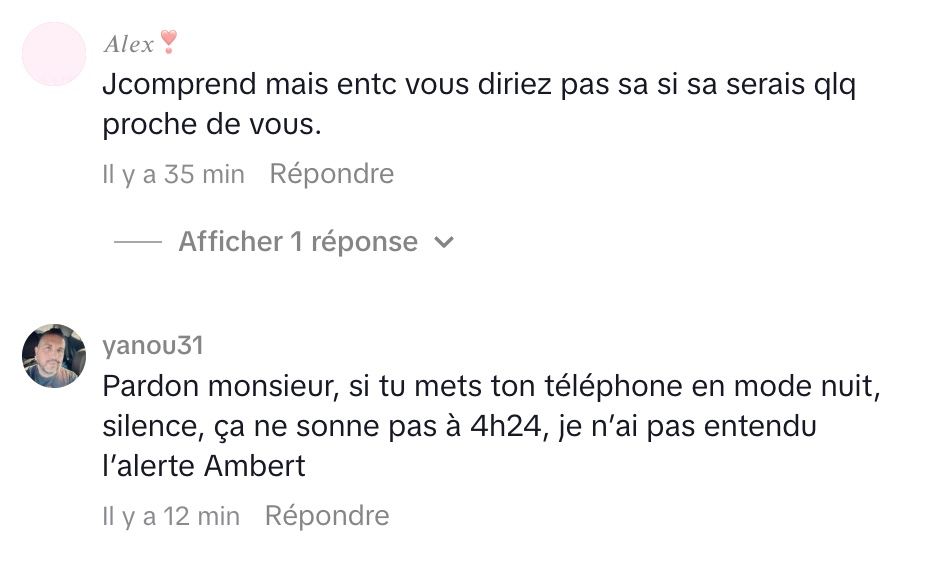 Il remet aussi en question le délai entre le signalement initial — évoqué en soirée — et la diffusion massive au petit matin. De l’autre, il reconnaît sans détour l’importance du dispositif : si son propre enfant était porté disparu, il souhaiterait lui aussi une mobilisation rapide et généralisée.