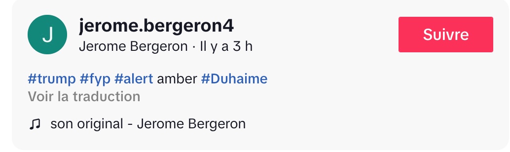 @jerome.bergeron4 #trump #fyp #alert amber #Duhaime ♬ son original – Jerome Bergeron