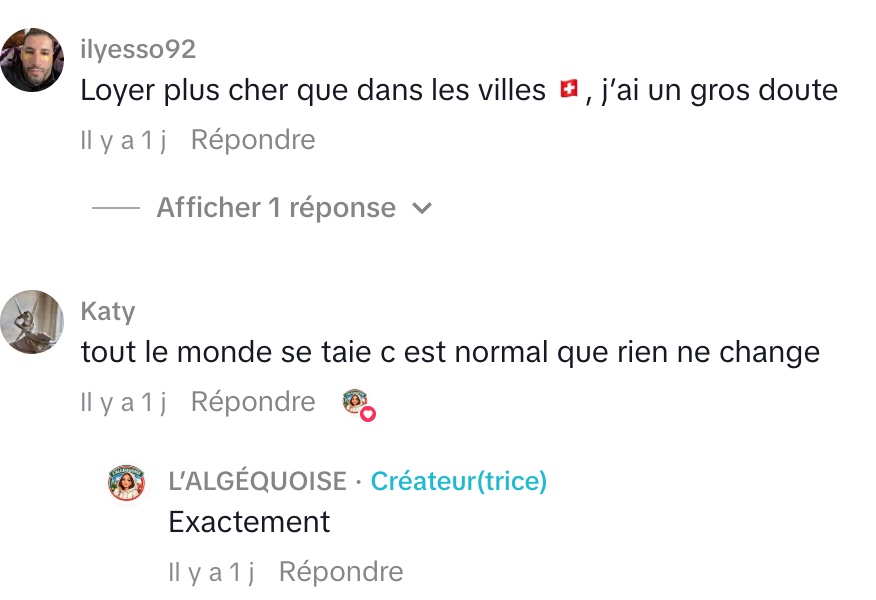 Au-delà des faits, son message repose surtout sur une émotion brute : l’inquiétude face à l’avenir et l’impression que les décisions se prennent sans réelle consultation citoyenne. Ce type de contenu, direct et sans filtre, capte l’attention parce qu’il reflète une frustration authentique. Il ne propose pas nécessairement de solutions, mais il a le mérite de provoquer une réflexion et surtout, de briser le silence qu’elle dénonce.