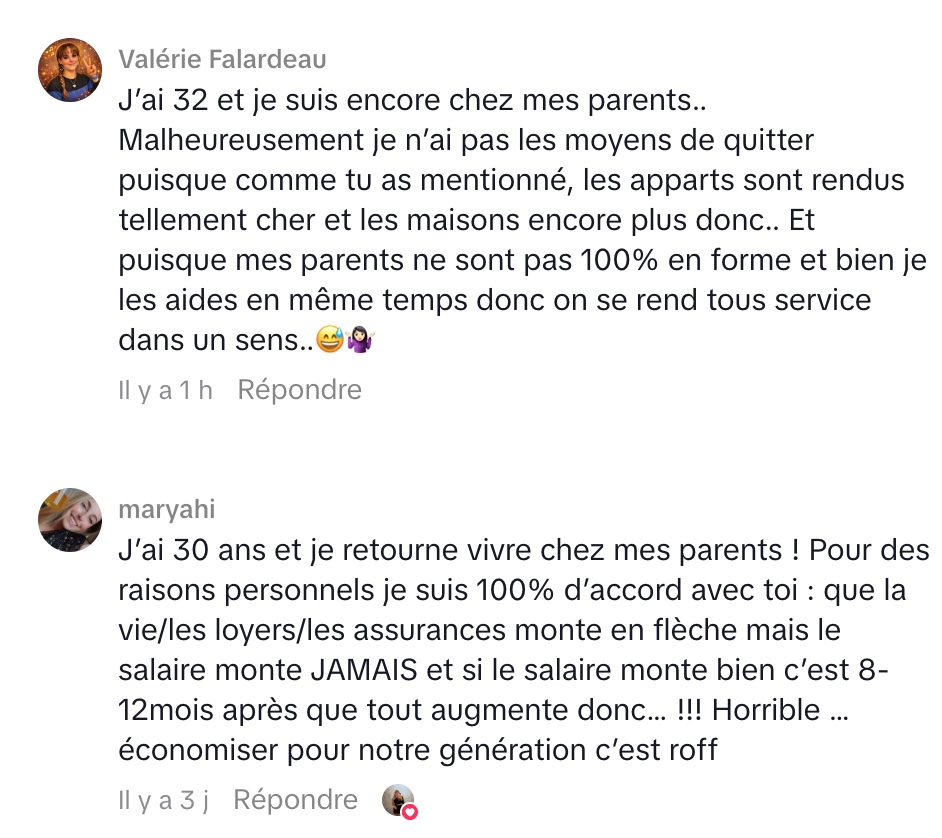 Les propos de Marie-Jade soulèvent une réalité de plus en plus répandue chez les jeunes adultes : celle de prolonger la vie chez les parents, non par confort excessif, mais par choix réfléchi face à un contexte économique difficile. Son point de vue met en lumière un décalage entre les attentes sociales traditionnelles quitter le nid familial tôt et les contraintes actuelles, notamment le coût élevé des loyers et de la vie en général.