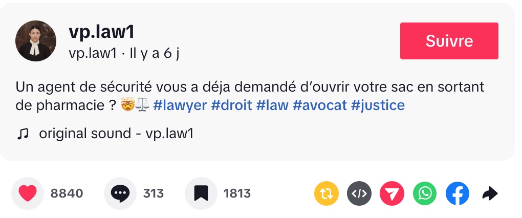 @vp.law1 Un agent de sécurité vous a déja demandé d’ouvrir votre sac en sortant de pharmacie ? 🤯⚖️ #lawyer #droit #law #avocat #justice ♬ original sound – vp.law1