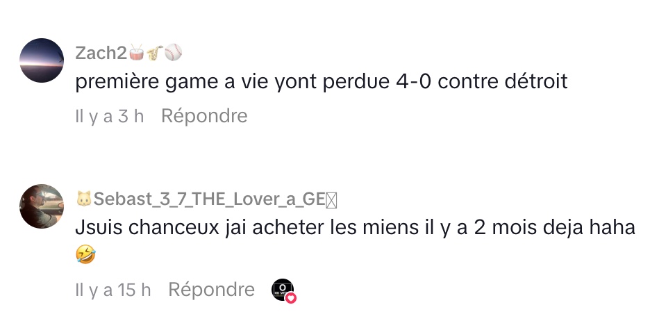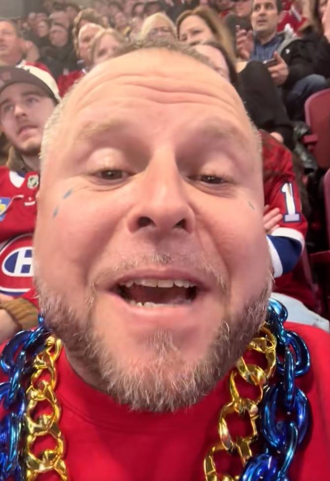 Dans son TikTok filmé au Centre Bell dimanche soir, Danick adopte un ton à la fois sarcastique et humoristique pour commenter la déception des fans présents. Assis au cœur de l’action, il s’adresse directement aux spectateurs qui ont investi jusqu’à 2000 $ pour assister au potentiel 50e but de la saison de Cole Caufield.
