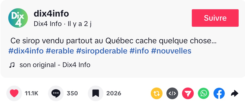 @dix4info Ce sirop vendu partout au Québec cache quelque chose… #dix4info #erable #siropderable #info #nouvelles ♬ son original – Dix4 Info