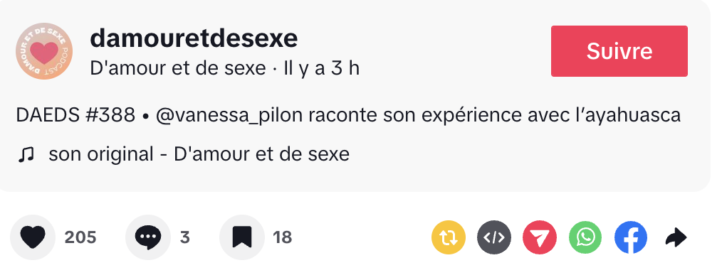 @damouretdesexeDAEDS #388 • @vanessa_pilon raconte son expérience avec l’ayahuasca♬ son original – D’amour et de sexe