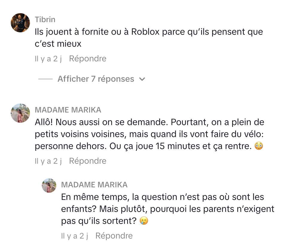 Son témoignage soulève plusieurs pistes de réflexion. Est-ce que les écrans occupent désormais une trop grande place dans le quotidien des jeunes? Les horaires plus chargés des familles limitent-ils les moments de jeu libre? Ou encore, est-ce que les dynamiques de voisinage ont changé, rendant les interactions plus rares?