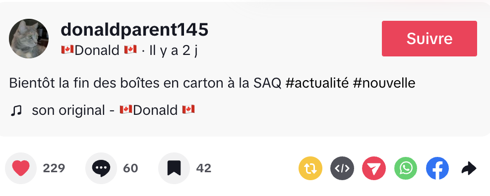 @donaldparent145 Bientôt la fin des boîtes en carton à la SAQ #actualité #nouvelle ♬ son original – 🇨🇦Donald 🇨🇦