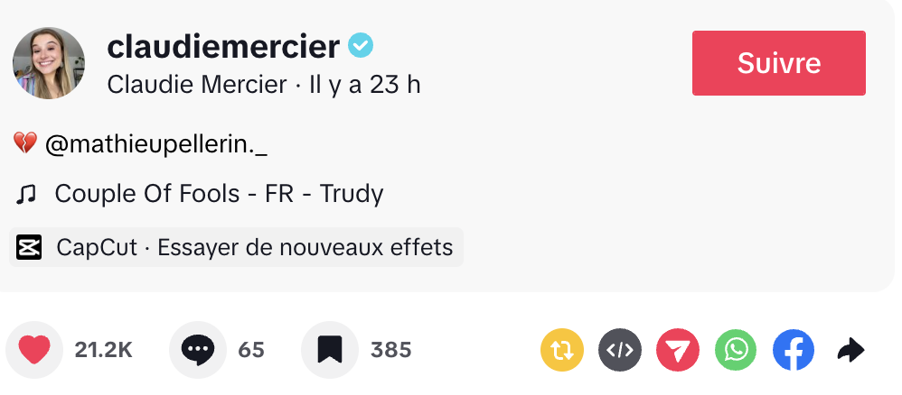 @claudiemercier 💔 @mathieupellerin._ ♬ Couple Of Fools – FR – Trudy