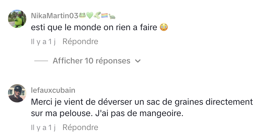 La citoyenne explique pourtant agir de manière responsable. Elle nettoie quotidiennement les lieux et insiste sur le fait que ces mangeoires ont une valeur éducative et affective, notamment pour sa jeune fille de trois ans, qui adore observer la faune. Elle affirme ne pas avoir été informée auparavant de l’existence d’un règlement encadrant ce type d’installation.